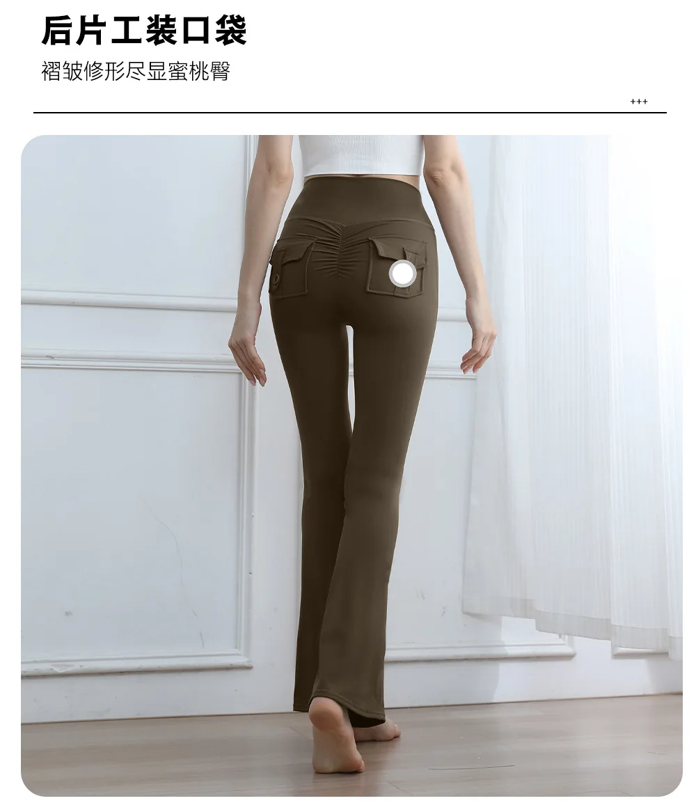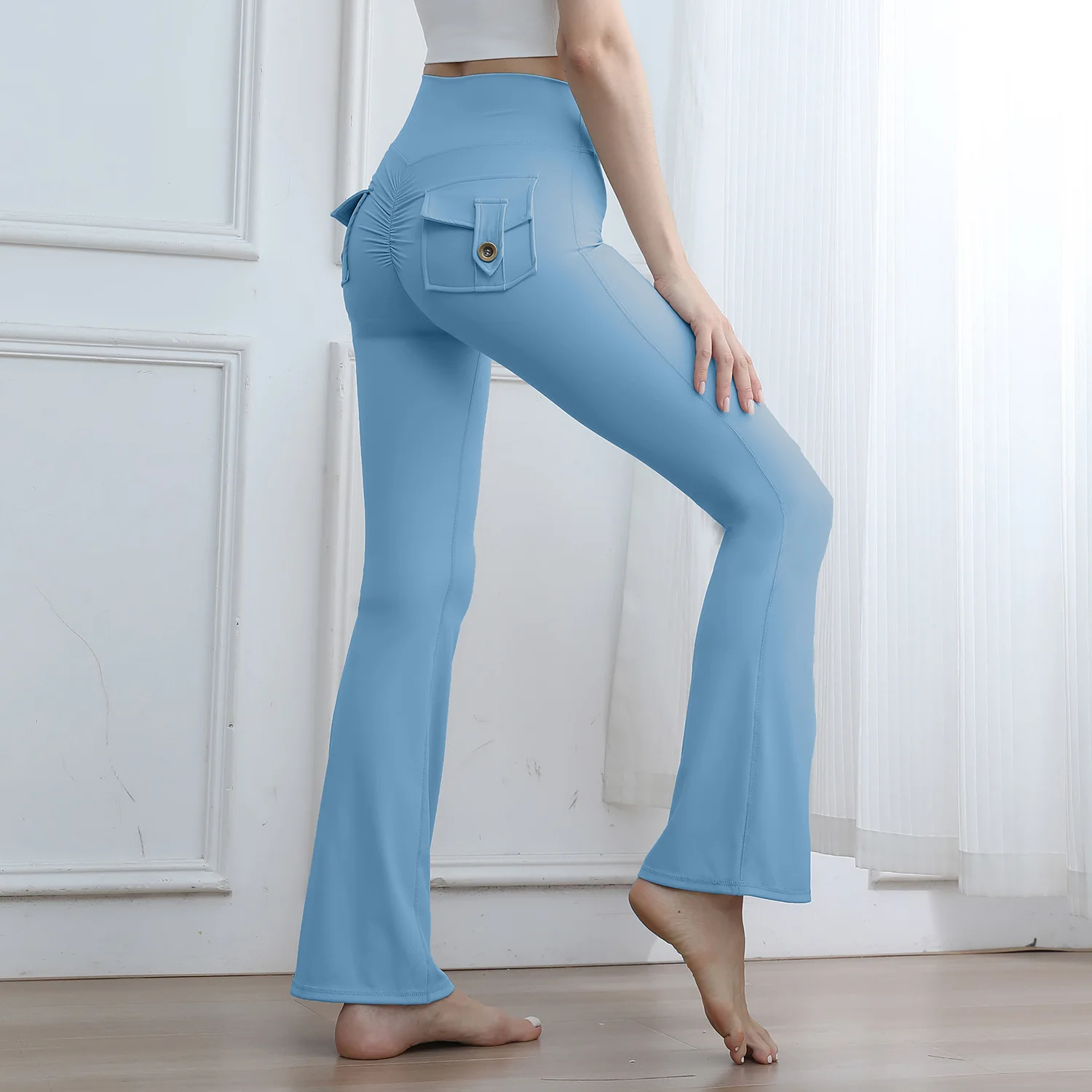 High Waist Women's Flare Leggings with Pockets - Quick Dry Yoga and Fitness Pants for Training and Running
